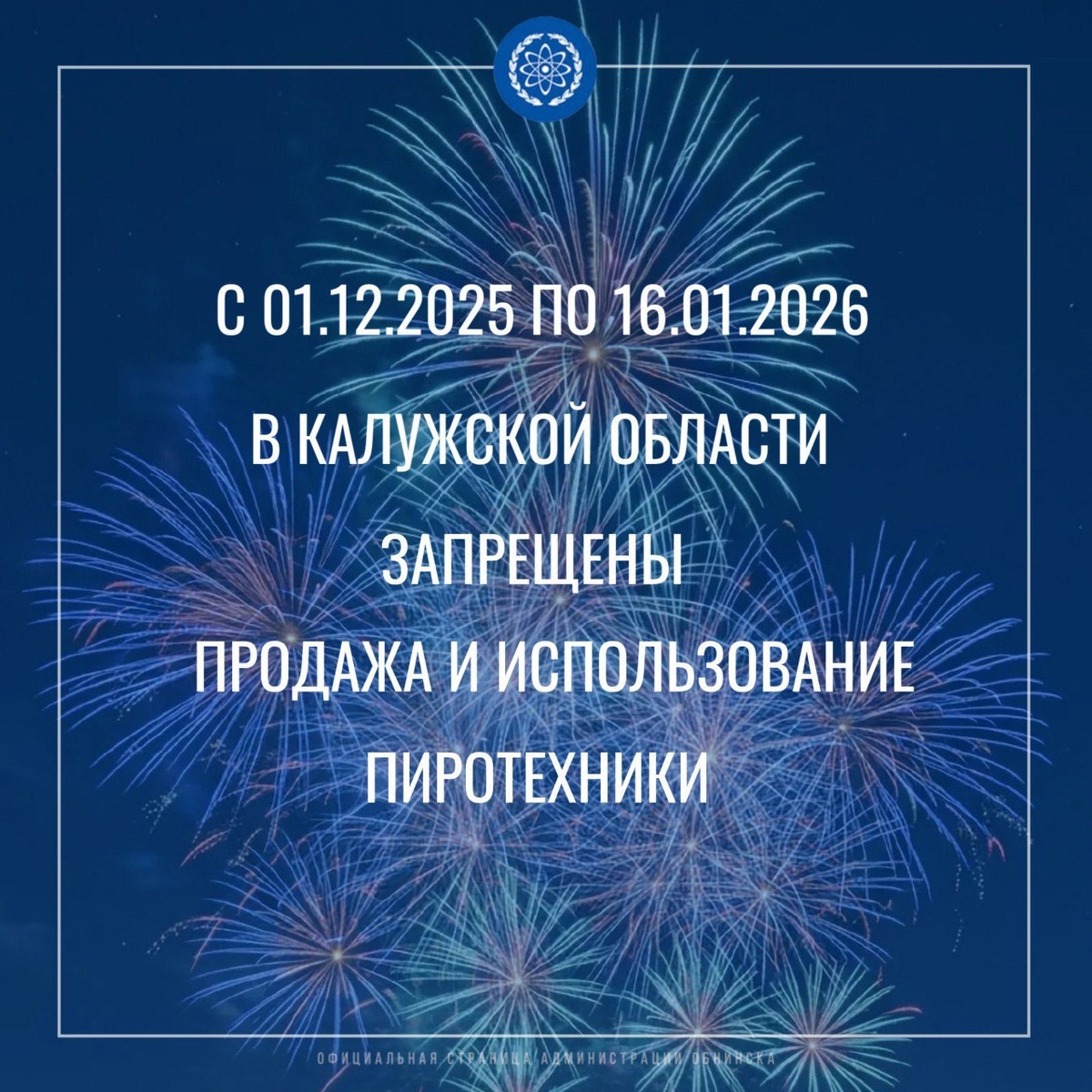 Напоминаем, что с 1 декабря 2025 года по 16 января 2026 года включительно в Калужской области введён запрет на продажу, а также использование организациями, индивидуальными предпринимателями и гражданами пиротехнических изделий. За нарушение запрета региональным законом «Об административных правонарушениях» для должностных, юридических лиц и граждан установлена административная ответственность в виде штрафа.