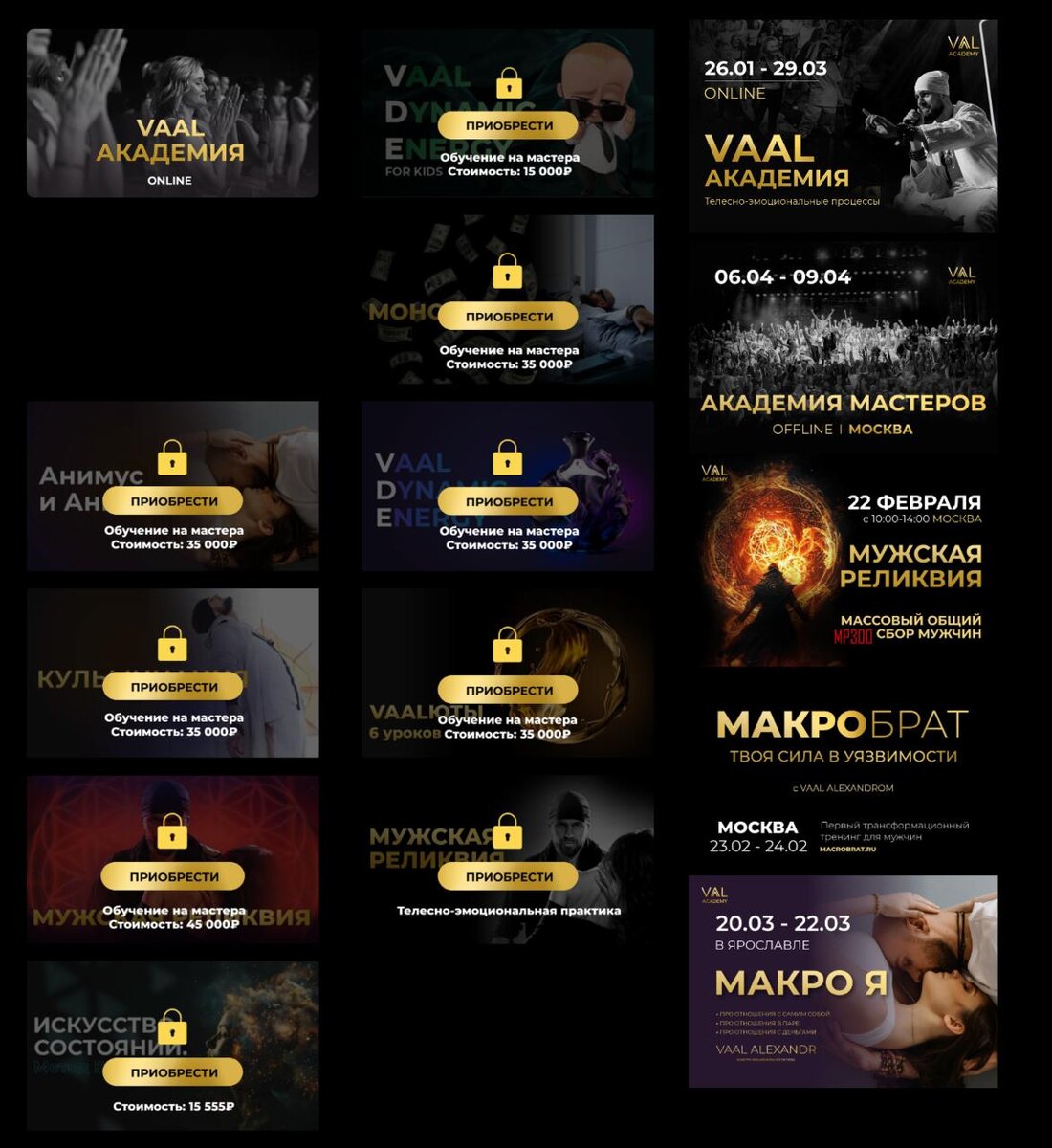 зайди в iavaal.ru/my и вы увидете, все что доступно сейчас в Академии... Ближайшие обучения - Висцеральная терапия и тригерные точки - Академия мастеров онлайн - конец января Все что под замочком доступно в записи iavaal.ru/my