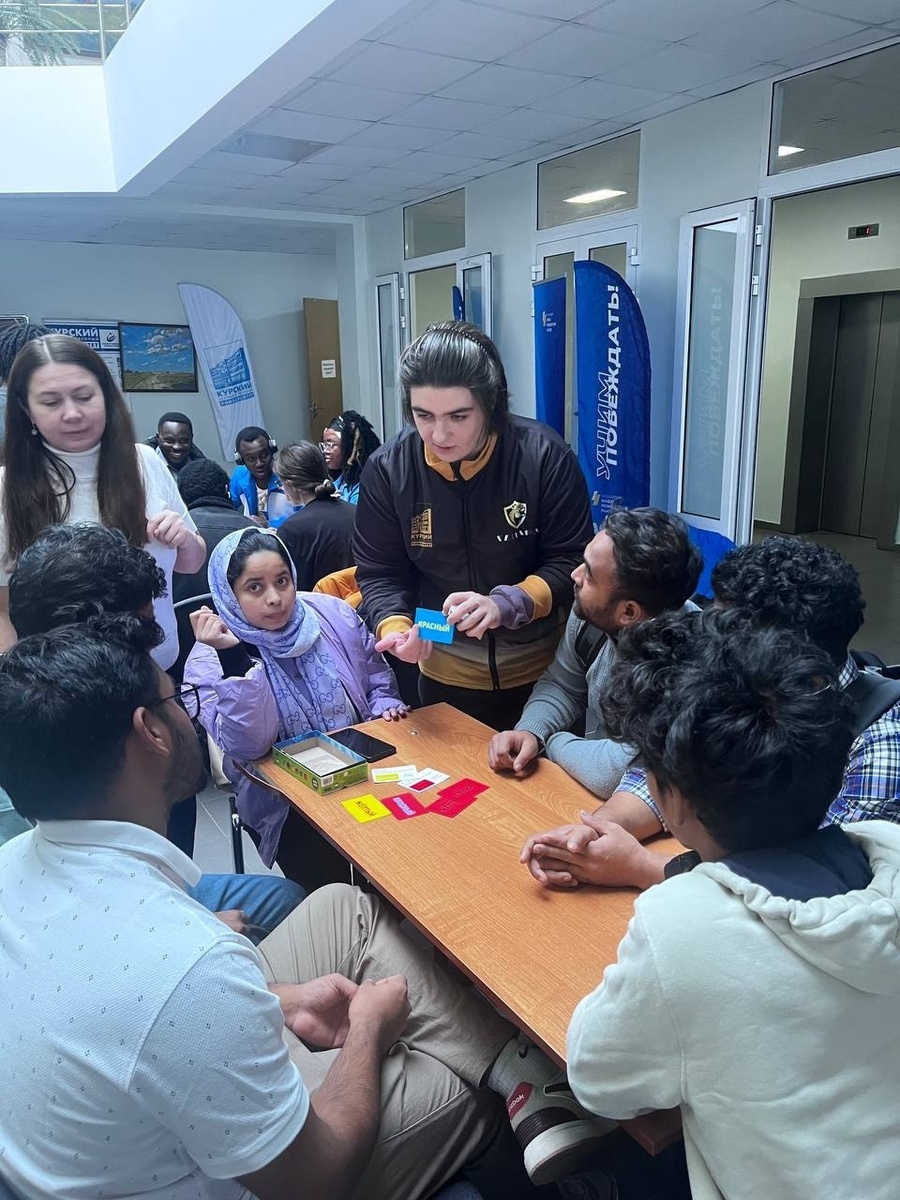 🎲 Клуб настольных игр «Гепард» организовал специальный турнир для иностранных студентов вуза. В мероприятии приняли участие гости из Бангладеш, Кении и других стран. Главной игрой стал «Соображарий» – весёлое состязание в знании русского языка. Благодаря нему студенты-иностранцы узнали много новый русских слов: названия город, вещей и предметов. Вместе с преподавателями ребята впервые попробовали и Бэнг, Codenames и Экивоки. Особую ценность мероприятию придало участие студентов-переводчиков, которые получили практический опыт межкультурной коммуникации во время игрового процесса. ❤️ КГУ в MAX