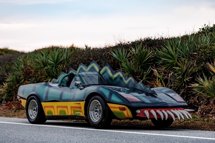 Этот родстер с кузовом из стеклопластика — реплика автомобиля «Monster» из фильма «Смертельная Гонка 2000» (Death Race 2000) 1975 года. Построен более двадцати лет назад, в начале 2000-х входил в коллекцию музея Volo Auto Museum в Иллинойсе, затем находился в частной коллекции и позже экспонировался в музее Rodz and Bodz в Колорадо. Автомобиль построен на шасси Volkswagen и оснащён 1,6-литровым оппозитным четырёхцилиндровым мотором, работающим в паре с четырёхступенчатой механической трансмиссией. Экстерьер выполнен в многоцветной «рептильной» тематике с характерными элементами дизайна: центральным «плавником», клыками спереди и узором, имитирующим чешую. Кузов выполнен из стеклопластика и по форме напоминает Chevrolet Corvette C3. Среди внешних деталей — дуга безопасности, закрытые фары, два боковых зеркала и полированный центральный выхлоп. Салон отделан чёрным ковролином, установлены пластиковые ковшеобразные сиденья с поясными ремнями безопасности. Приборная панель минималистична: