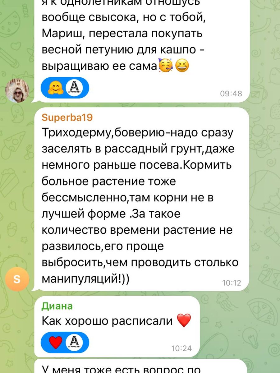 Если бы да кабы, то и бабка была бы дедом.😁 Много чего надо делать заранее, конечно, но мы же не можем вернуться в прошлое. Боверия, как и другие энтомопатогенные грибы развивается минимум месяц до рабочего состояния в почве и дольше (от исходника). А Метаризиум (друг ее из грибного царства борцов с вредителями) и все три. Потому сейчас эти грибы не помогут оперативно. Вносить Боверию вместе с Триходермой не рекомендуется, ибо Боверия — гриб, а Триходерма — антигриб. Они будут мешать развитию друг-друга. Поэтому мой выбор сейчас — быстро развивающаяся триходерма (Глиокладин) при наличии возможных корневых гнилей. Кормить больное растение предлагается ПОСЛЕ избавления от патогенов, чтобы ничто «не отвлекало» его от процесса еды. А то получается: «зачем больному гемоглобин, если у него всё равно малокровие».😁 Обратите внимание ЧЕМ именно кормим: Монокалийфосфат с лимонкой. Чем это растению грозит? Фосфор будет способствовать, как раз, развитию корневой, которой этого элемента так не