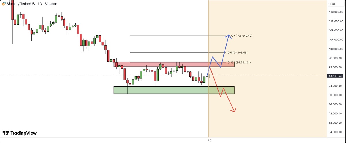 Π¦Π΅Π½Π°: ΠΏΠΎΠ΄ $90β―000 π ANALYSIS ΠΠΈΡΠΊΠΎΠΈΠ½ ΡΠΎΡΠ³ΡΠ΅Ρ Π² ΠΊΠΎΡΡΠ΅ΠΊΡΠΈΡΡΡΡΠ΅ΠΌ Π΄ΠΈΠ°ΠΏΠ°Π·ΠΎΠ½Π΅ $84β―000β$94β―000 ΠΏΠΎΡΠ»Π΅ ΠΏΠ°Π΄Π΅Π½ΠΈΡ Π±ΠΎΠ»Π΅Π΅ ΡΠ΅ΠΌ Π½Π° $35β―000 ΠΎΡ ATH $126β―000. ΠΡΠ»ΠΈ Π±Ρ Π±ΡΠΊΠΈ ΡΠ°Π·ΠΎΡΠ²Π°Π»ΠΈ ΡΠΎΠΏΡΠΎΡΠΈΠ²Π»Π΅Π½ΠΈΠ΅ Π½Π° $94β―000, ΠΊΡΡΡ Π±ΡΡΡΡΠΎ ΠΏΠΎΠ΄Π½ΠΈΠΌΠ΅ΡΡΡ ΠΊ $100β―000, Π·Π°ΡΠ΅ΠΌ ΠΊ $108β―000, ΠΏΠΎΠΊΠ° ΡΠΈΠ»Π° Π½Π΅ ΠΈΡΡΡΠΊΠ½Π΅Ρ. ΠΠ΅Π΄Π²Π΅ΠΆΡΡ Π΄ΠΈΠ½Π°ΠΌΠΈΠΊΠ° β Π΅ΡΠ»ΠΈ ΡΠ΅Π½Π° ΡΠΏΠ°Π΄Π΅Ρ Π½ΠΈΠΆΠ΅ $84β―000, ΠΌΠΎΠΆΠ½ΠΎ ΠΎΠΆΠΈΠ΄Π°ΡΡ ΡΠΏΡΠΈΠ½Ρ Π΄ΠΎ $72β―000, ΠΊΠ°ΠΊ Π² ΠΏΡΠ΅Π΄ΡΠ΄ΡΡΠ΅ΠΉ ΠΊΠΎΡΡΠ΅ΠΊΡΠΈΠΈ. π ΠΠ»ΡΡΠ΅Π²ΡΠ΅ ΠΌΠΎΠΌΠ΅Π½ΡΡ: - ΠΡΡΠΈΠΉ ΡΠ»ΡΡΠ°ΠΉ: Π΄ΠΎΡΡΠΈΠΆΠ΅Π½ΠΈΠ΅ $94β―000 β $100β―000 β $108β―000. - ΠΠ΅Π΄Π²Π΅ΠΆΠΈΠΉ ΡΠ»ΡΡΠ°ΠΉ: ΠΏΠ°Π΄Π΅Π½ΠΈΠ΅ Π½ΠΈΠΆΠ΅ $84β―000 β Π²ΠΎΠ·ΠΌΠΎΠΆΠ½ΡΠΉ ΠΌΠΈΠ½ΠΈΠΌΡΠΌ $72β―000. β οΈ Π ΠΈΡΠΊΠΈ: Π½Π΅ΡΡΡΠΎΠΉΡΠΈΠ²ΠΎΡΡΡ ΡΡΠ½ΠΊΠ° ΠΈ Π½Π΅ΡΠΏΠΎΡΠΎΠ±Π½ΠΎΡΡΡ ΡΠ΄Π΅ΡΠΆΠ°ΡΡ ΠΊΠ»ΡΡΠ΅Π²ΡΠ΅ ΡΡΠΎΠ²Π½ΠΈ