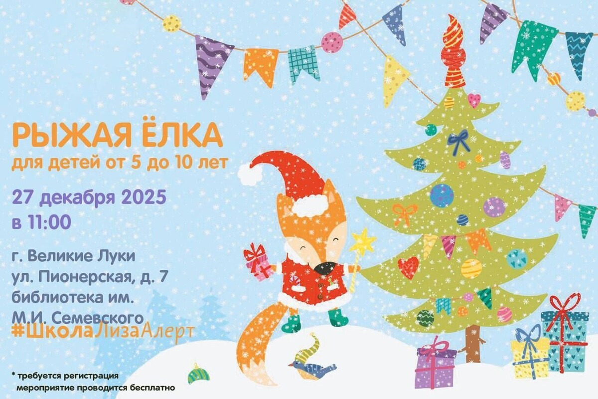 🎉 Поисковый отряд «ЛизаАлерт» проведёт новогоднее мероприятие «Рыжая ёлка» для детей 5-10 лет в Великих Луках. 📅 Мероприятие состоится 27 декабря в 11:00 в библиотеке имени М. И. Семевского по адресу: Пионерская, д.7. 🎭 Детей ждёт увлекательная история с участием сказочных героев, где в игровой форме расскажут о правилах безопасности. ⚠️ Регистрация обязательна, количество мест ограничено. 👉Подписывайтесь на ВЛуки.ру