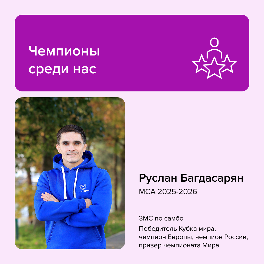 Руслан Багдасарян @bagarus007 — чемпион России, Европы и мира по самбо, обладатель Кубка мира, заслуженный мастер спорта. Он много лет был в большом спорте. Победы, сборная, турниры по всему миру — знакомая реальность, в которой все ясно и понятно. Но два года назад он впервые всерьез подумал об учебе. Нашел программу «Мастер спортивного администрирования» в РМОУ, прочитал восторженные отзывы — и твердо решил: он должен учиться здесь. Решение далось непросто: были сомнения, страх не поступить и не попасть на бюджет. Все изменилось, когда пришло письмо о зачислении. В тот момент стало ясно: впереди — новый этап. Сегодня Руслан учится в РМОУ и развивает собственный проект. Находит идеи, получает ответы, знакомится с людьми, которые живут спортом так же, как он. И отмечает, что обучение дает мощный импульс для роста. Восхищаемся решимостью наших студентов. И рады быть частью их пути. #рмоу #riou #рмоусочи #рмоу_студенты #спорт #менеджмент #образование #олимпийскийуниверситет #сочи