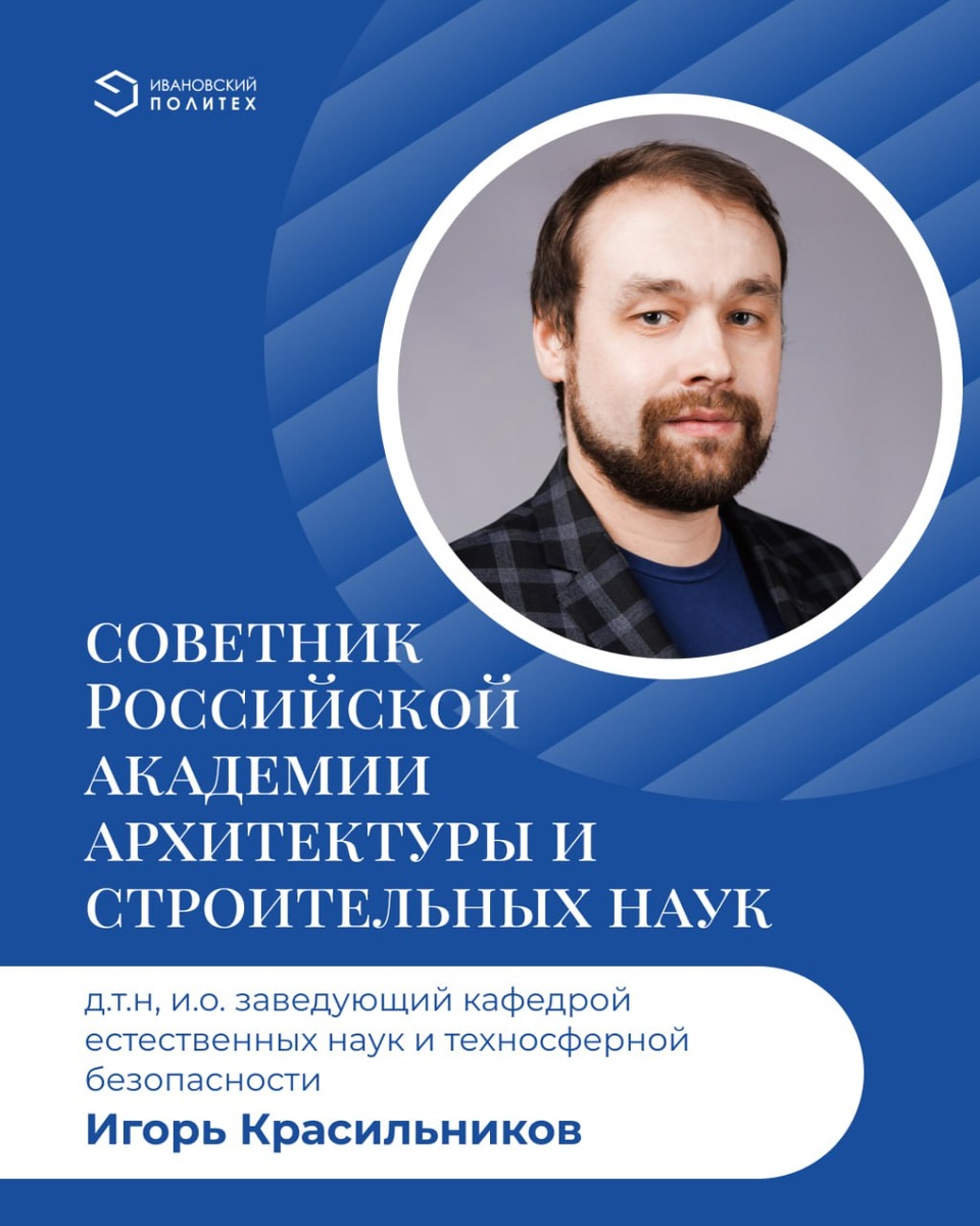 Доктору технических наук, и.о. заведующего кафедрой естественных наук и техносферной безопасности Игорю Красильникову присвоено звание советника Российской академии архитектуры и строительных наук. Решение Президиума РААСН подписано Президентом Академии Дмитрием Швыдковским 10 декабря. 🎉 Поздравляем Игоря Викторовича с такой почетной наградой! 👻 ИВГПУ в MAX | 📲 ИВГПУ в ВК 👻 Приемная комиссия ИВГПУ