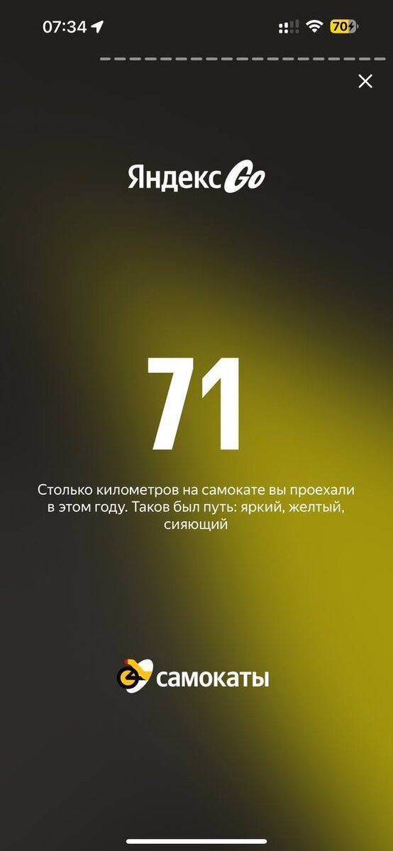 »! Поэтому представляю вам вообще все итоги этого года. Интересно, а как у вас? - 71 километр на самокате, в целом, мог доехать до Сергиев Посада - 725 литров бензина на заправках. Лучше бы столько было сидра - 28 доставок посылок. Думаю, в следующем году стоит нарастить темпы распределения обязанностей - 21 заказ Яндексы Еды прямо домой в теплую кровать - 39 товаров было в самос большом заказе Яндекс Лавки - 17 заказов из Маркета: техника, одежда и не только - всего 4 раза за год взял Бери Заряд. Спасибо большому аккумулятору моего телефона - 17402₽ получил кэшбеком и даже не заметил - 1309₽, к счастью, ушли в благотворительные фонды Кто я | О итогах года, Яндексе и обо мне. Подписывайтесь!