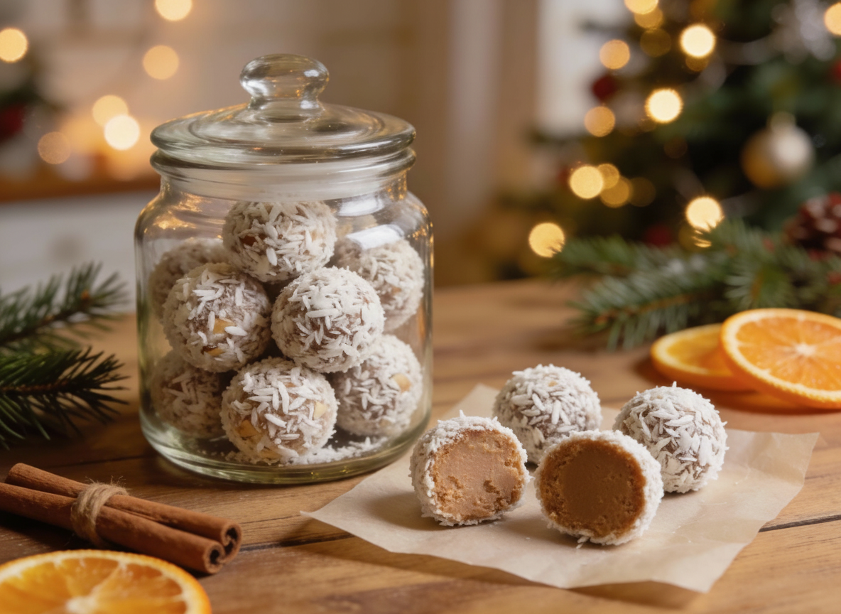 ПП-конфеты "Новогодние снежки" — это полезная альтернатива магазинным сладостям без рафинированного сахара, на основе фиников, орехов и кокоса. Они идеально подойдут для подарка на Новый год: питательные, с праздничным вкусом и визуалом, богаты клетчаткой и полезными жирами. Рецепт рассчитан на 25–30 конфет, калорийность одной — около 80–100 ккал. 1. Замочите финики в горячей воде на 10 минут, слейте жидкость и измельчите в блендере до пастообразной массы — это заменит сахар и свяжет ингредиенты. 2. Добавьте измельченные орехи, 80 г кокосовой стружки, какао, корицу и соль. Взбейте до однородной липкой тестообразной массы (если сухо, добавьте 1–2 ст. л. воды). 3. Сформируйте шарики диаметром 2–3 см (мокрыми руками, чтобы не липло). В центр можно вставить половинку ореха для текстуры. 4. Обваляйте в кокосовой стружке или какао. Охладите в холодильнике 1–2 часа для застывания. Готово за 30 минут активной работы плюс охлаждение. Финики дают натуральную сладость, калий и клетчатку для пищев