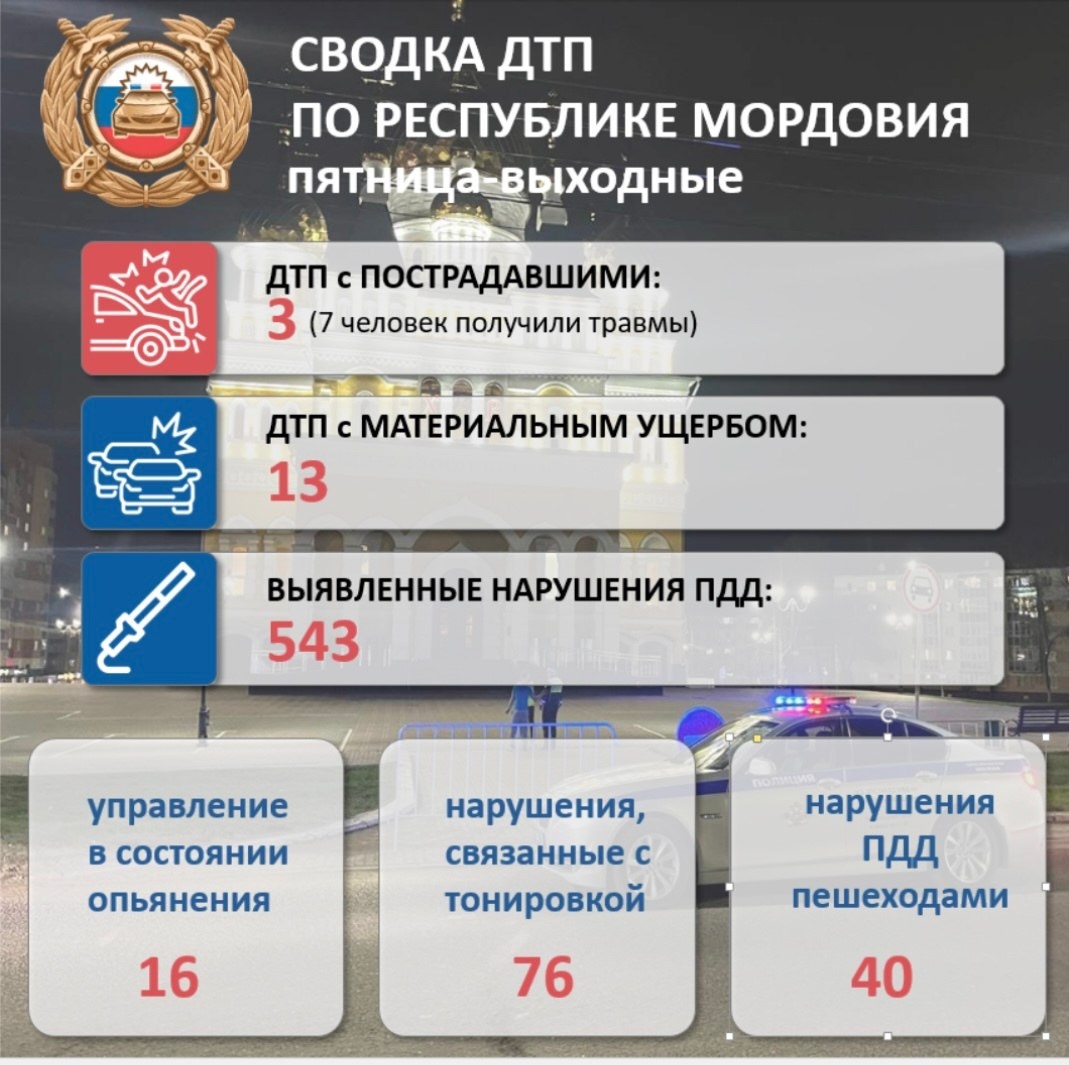 👮♀️ Обстановка с аварийностью на дорогах Мордовии и нарушениями ПДД за 19-21 декабря 2025 года