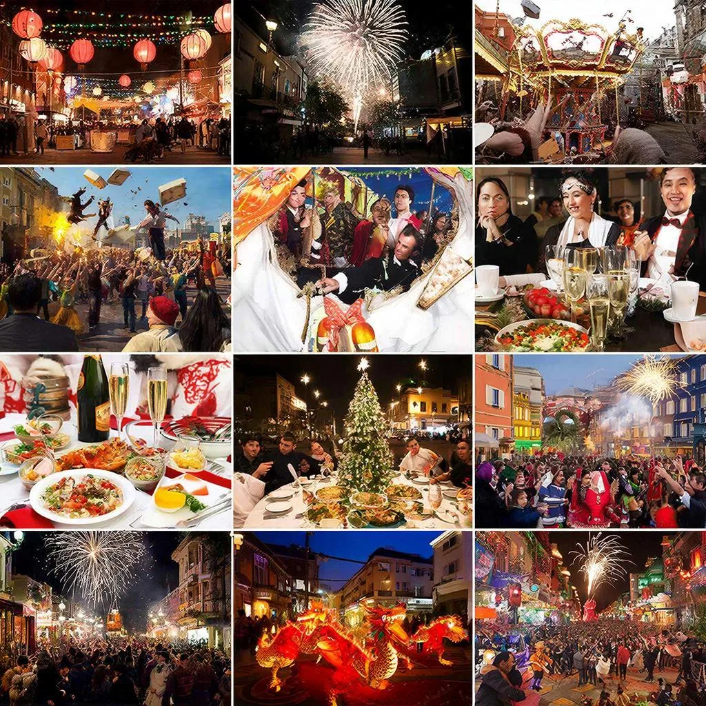 Новый год — праздник, который отмечают практически во всех уголках планеты. Несмотря на общую праздничную атмосферу, каждая страна привносит свою уникальную традицию в празднование этого события. Давайте посмотрим, как встречают Новый год жители разных стран. В России Новый год традиционно отмечается с размахом. Центральным элементом праздника является нарядная елка, украшенная гирляндами, игрушками и мишурой. Обязательным атрибутом вечера являются оливье, мандарины и шампанское. Ровно в полночь россияне слушают обращение президента, а затем открывают бутылки игристого вина и поздравляют друг друга. Немцы начинают праздновать заранее, устраивая рождественские ярмарки, которые плавно переходят в новогодние торжества. Одним из популярных обычаев является гадание на свинце: расплавленный свинец бросают в холодную воду, и по форме застывшего металла пытаются предсказать будущее. В Японии Новый год называют Синнэн и отмечают его очень торжественно. Жители украшают дома веточками сосны, бам
