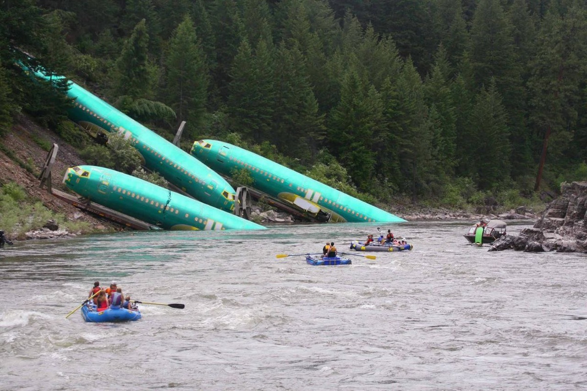 2014. В штате Монтана (США) сошёл с рельс поезд и в реку скатились 3 фюзеляжа (Боинг 737) и ещё три не докатились до реки. 3 фюзеляжа в помойку, 3 – в капремнот. Виновных не нашли – свалили на проблемы полотна, которые не зависели от оператора ЖД.