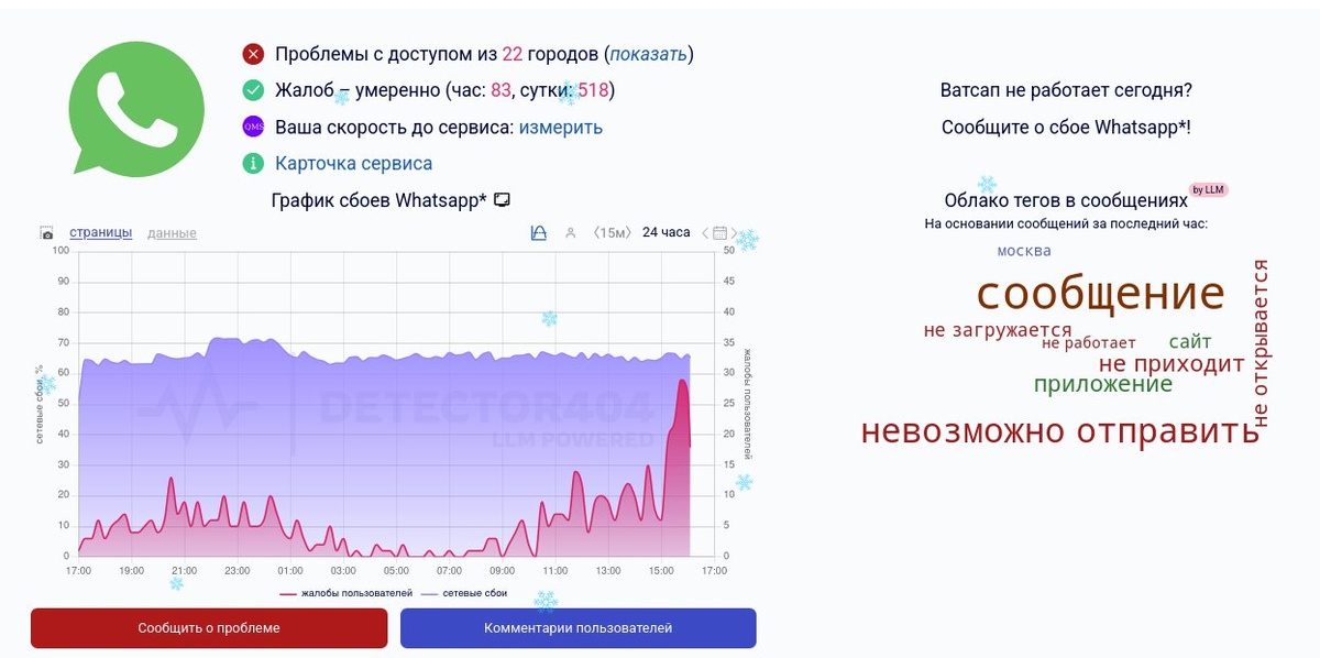 📝 Кратко: Российские пользователи сообщили о сбоях в работе мессенджера WhatsApp. У сервиса перестал работать десктопный клиент, возникли проблемы с некорректной работой оповещений, невозможно отправить текстовые и голосовые сообщения в мобильной версии. Согласно статусу работы сервиса в мире, у этой платформы нет глобального сбоя на настоящий момент. Читать далее 🔗 Читать оригинальную статью (ссылка) 📊 Источник: Habr ⏰ Время: 22.12.2025 11:16 📱 Другие каналы: 🪙 ВКрипту | 🎮 ВИгрухи | 🏎️ ВТачки | ✈️ ВТравелу #gadgets #гаджеты #технологии