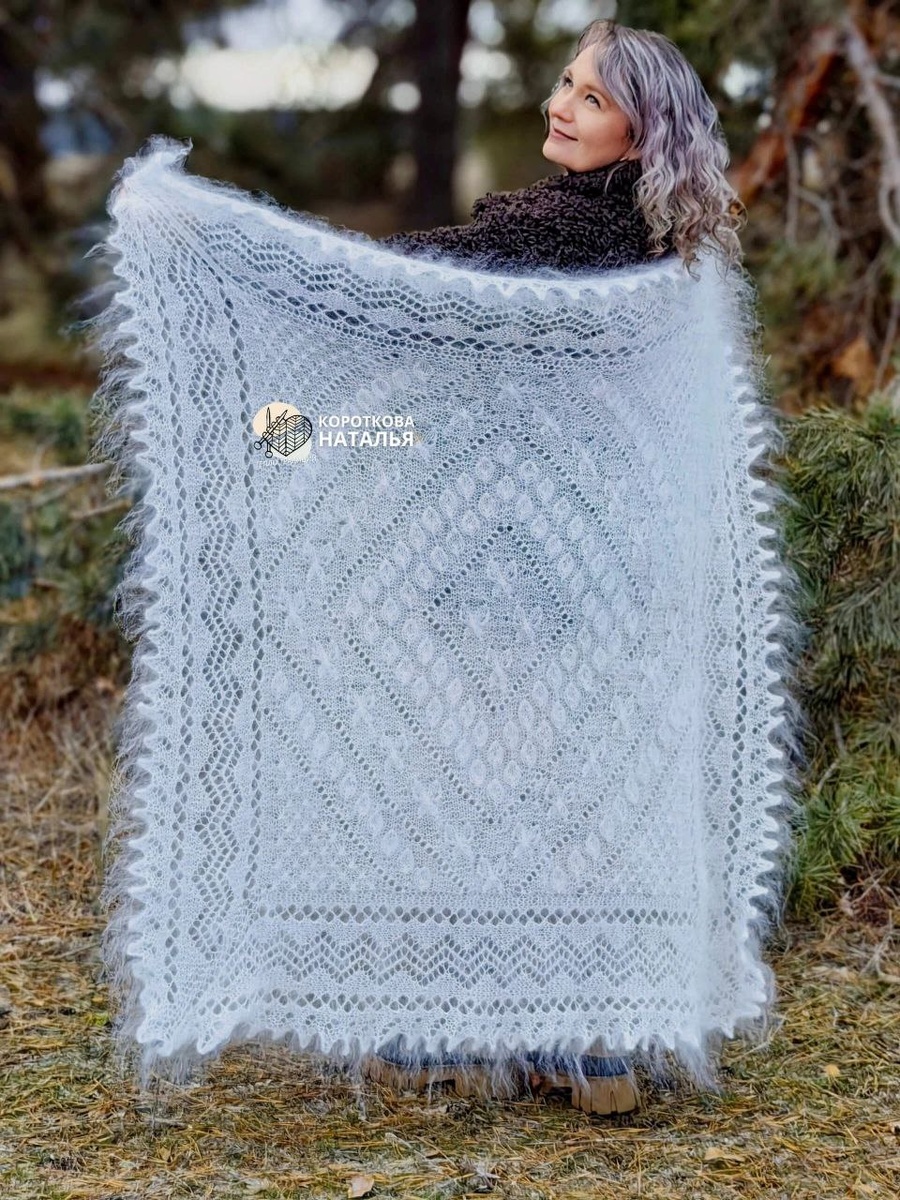 Еще несколько лет назад белый пуховый платок считали атрибутом прошлого столетия, но в новом сезоне ситуация обстоит иначе, и теперь шаль ажурной вязки хотят абсолютно все. С одной стороны, популярность этого аксессуара обусловлена ностальгией по прошлому и возвращением к истокам. С другой, — белый пуховый платок — один из главных элементов трендовой эстетики à la Russe, особенно на зимних свадьбах. А еще существует огромное количество стилизаций этого аксессуара. Поэтому шаль ажурной вязки окупает себя в тысячекратном размере🔥🔥🔥 Представленная ажурная шаль " Покров " - это не рядовой handmade , это штучное рисунчатое изделие с великолепным длинным и легким пухом , "расписным " , густым , плотным узором . Все полотно платка украшено белыми морозными листьями , которые словно кружатся в пуховом облаке