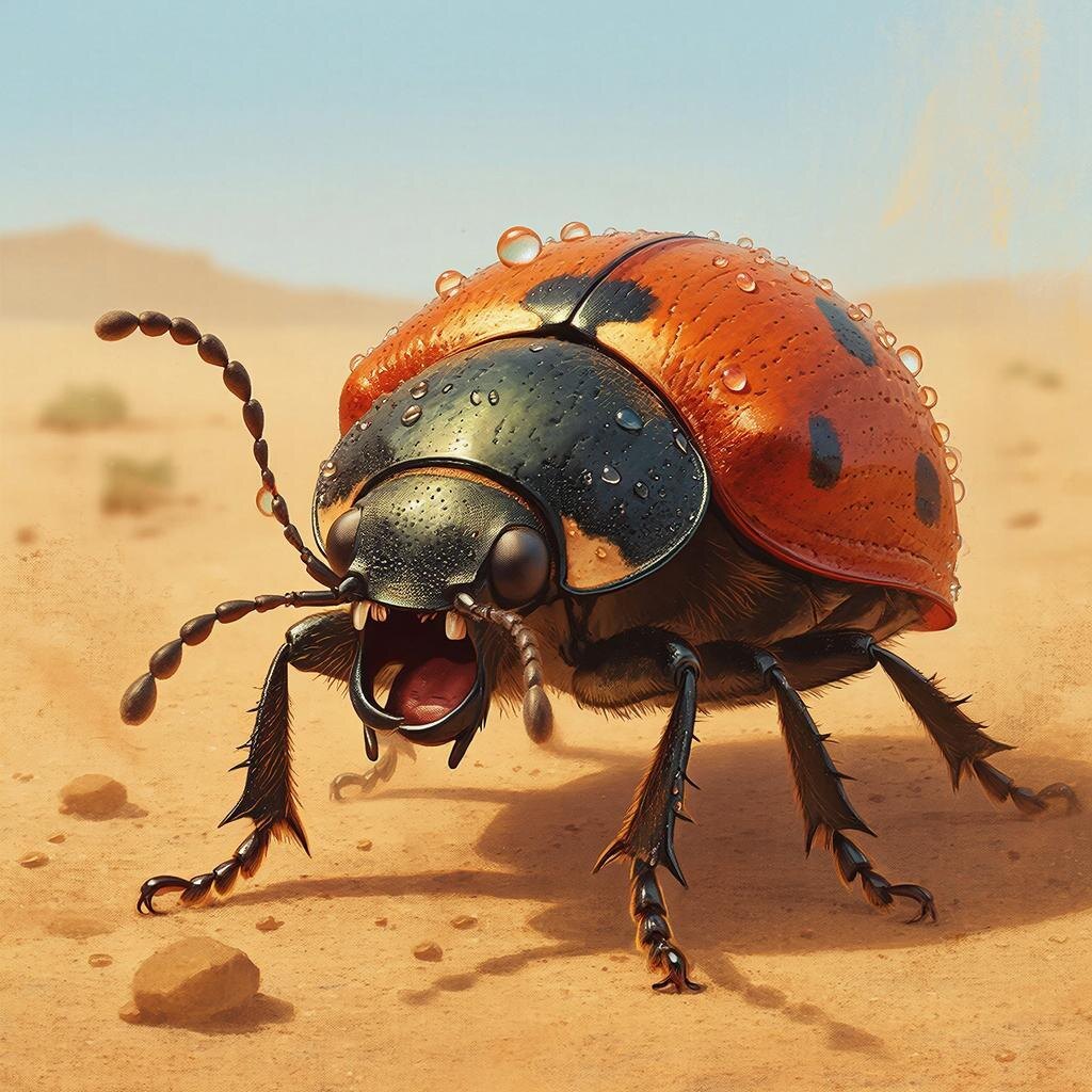 В Сахаре можно добыть воду… из жуков! 🤯 Некоторые виды жуков-чернотелок собирают влагу из утреннего тумана на своих ребристых спинах