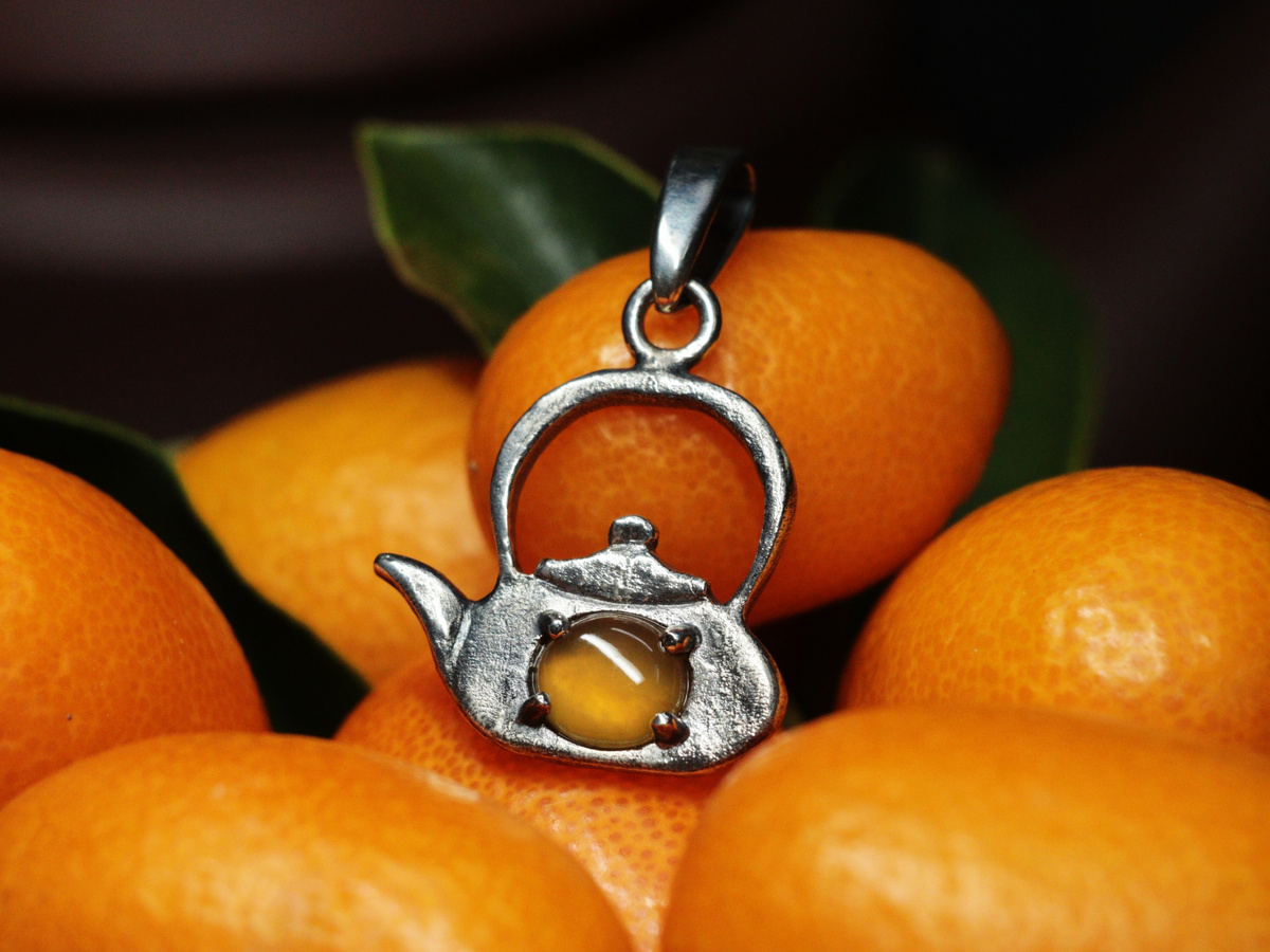 Чем холоднее за окном, тем приятнее ароматный чай с пряностями, фруктами, вареньем или полезными травами. В этом вся магия чая - он согревает не только тело, но и душу, помогает расслабиться, улучшает настроение, создает атмосферу уюта, настраивает на размышления. Не важно - это простой чай из пакетика или какой-то изысканный сорт чая, главное, чтобы он радовал и был вкусным! Кулон в виде маленького милого китайского чайника для настоящих любителей чая. Небольшой осколок белемнита, найденный на берегу Балтийского моря, сглаженный волнами и немного доработанный вручную, символизирует чай. По цвету он напоминает зеленый, травяной, липовый или цитрусовый чай. Кулон сделан из серебра с чернением и приятной фактурой под старину. Белемнит - окаменелая внутренняя раковина-ростр древнего моллюска, населявшего море 516-66млн лет назад. Цвет и прозрачность белемнита природные, при тщательном рассмотрении видны небольшие особенности его структуры. Размеры кулона с петелькой: 33х21мм. В комплекте