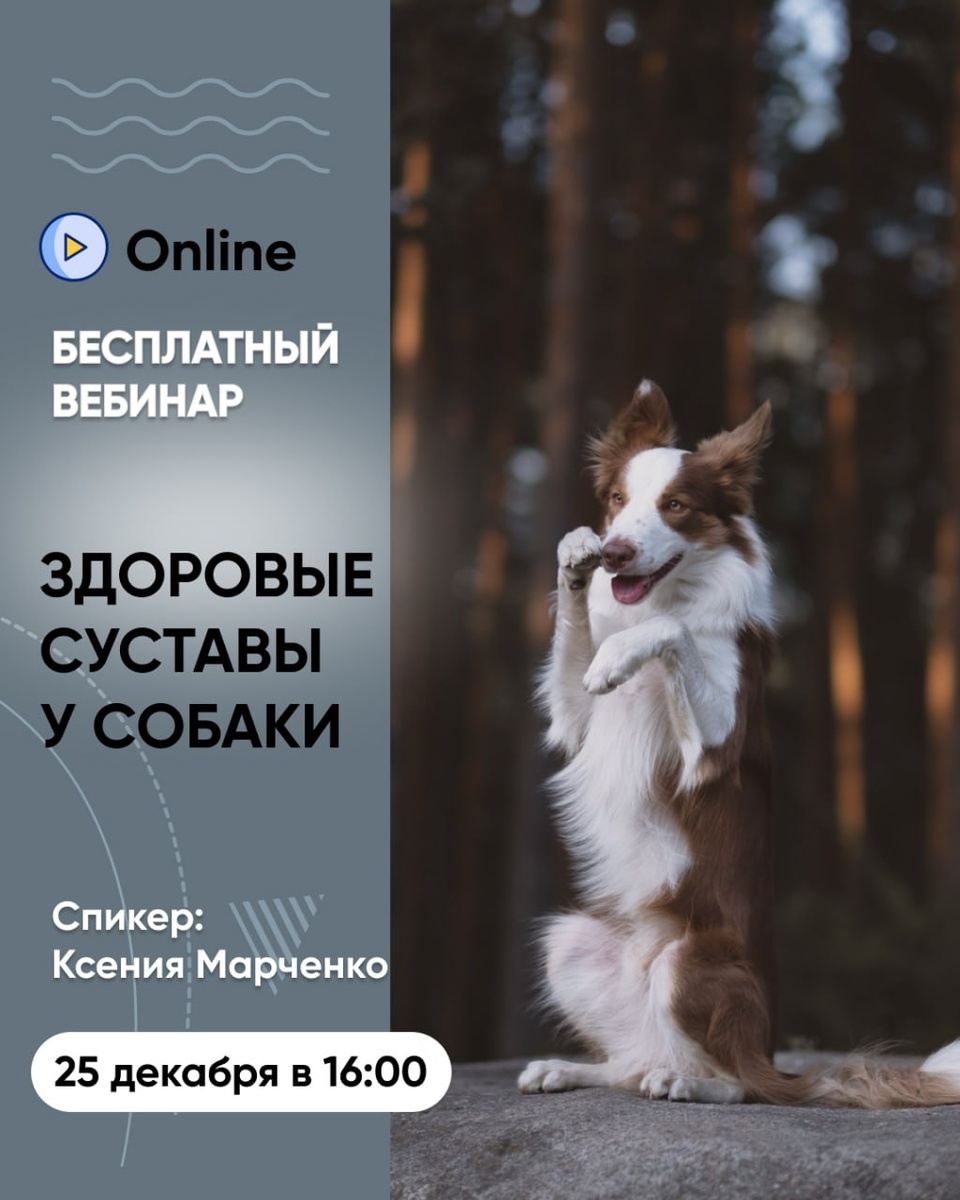 Приглашаем на БЕСПЛАТНЫЙ вебинар «Здоровые суставы и успешная реабилитация: как вернуть собаке радость движения
