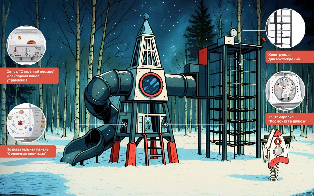 » - Площадки «Космос» превращают любой двор в пространство исследований, движения и обучения. - Интерактивные конструкции и лазалки стимулируют физическое развитие - Балансир с Белкой и Стрелкой знакомит детей с историей первых космонавтов - Тантамареска «Космонавт в шлюзе» и луноход развивают воображение и командную игру Элементы игровой площадки выполнены из прочного поликарбоната с ультрафиолетовой печатью, которая сохраняет яркость и детали. 💡 Интерактив для профессионалов Какие навыки вы считаете приоритетными для детских игровых пространств: 1️⃣ Координация и физическая активность 2️⃣ Воображение и креативное мышление 3️⃣ Командная работа и социальные навыки Напишите свой выбор в комментариях — нам важно ваше мнение для будущих проектов.