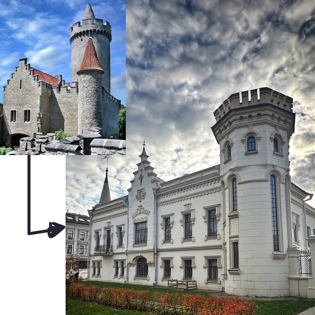 Архитекторы брали всё, что вдохновляло: барокко, шинуазри, готику, романский стиль, восточные и даже марокканские мотивы — часто то, чего в России никогда не было. И переносили это в провинциальные города- знакомили🤣. Без интернета и телевидения такие дома выглядели как настоящие «замки». Какие чувства они вызывали у горожан? Например, Дом Шамиля. При этом далеко не все заказчики понимали (и точно большинство и не видели), что такое готика или рыцари — это просто было модно. В этом памятнике архитектуры архитекторы Генрих Руш и Федор Амлонг собрали микс из готики, романской архитектуры и восточных мотивов. На карточках примерно прикинула, чем могли вдохновиться здесь архитекторы. А для кого здание изначально построили , читайте в этой замечательной статье.