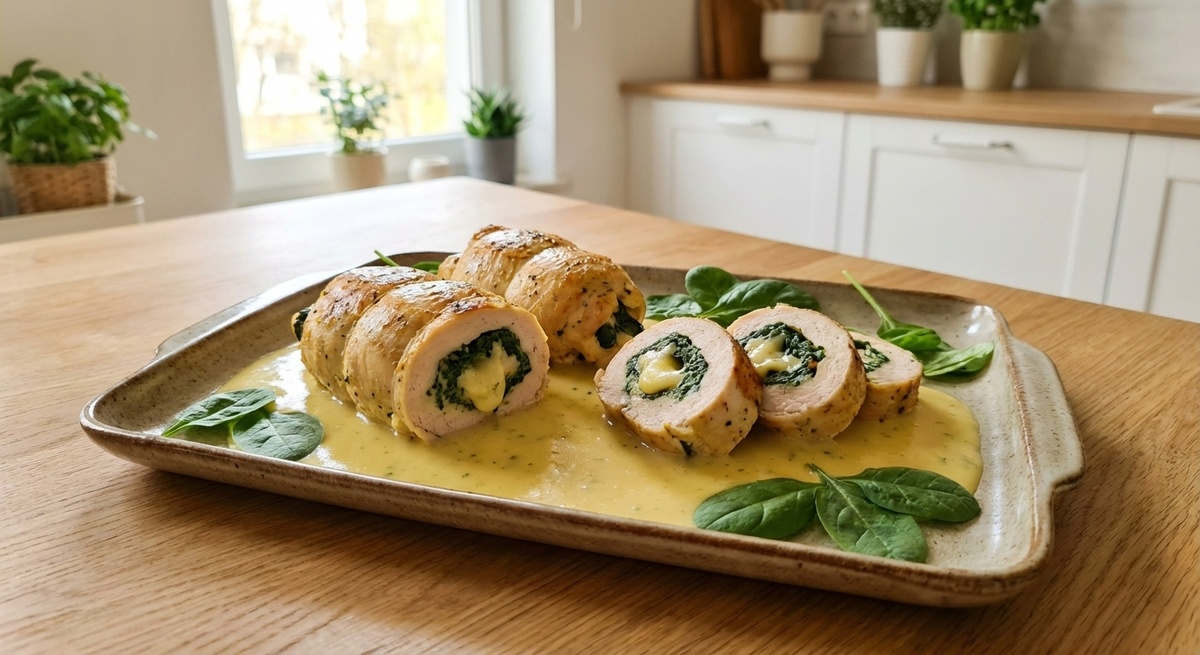 Обычно с ним всё понятно: отбил, пожарил, высушил… и снова «куриная подошва». Но если то же самое филе: получится уже не «обычная грудка на сковороде», а полноценное блюдо, которое не стыдно подать гостям — или просто устроить себе вечер «как в кафе». Ниже — пошаговый рецепт: от подготовки филе до красивой подачи на тарелке. Если шпинат свежий: Если шпинат замороженный: Дальше: Начинка должна быть густой, не водянистой. Этот шаг можно пропустить, если хочешь менее жирный вариант. Но с ним рулетики выглядят эффектнее. Визуально это уже «ресторанный» уровень: белое мясо, зелёная начинка, сливочный соус и аккуратная нарезка. Если вам нравятся рецепты «Ем дома, как в кафе» и вы готовили что-то по моим статьям, можно поддержать канал.