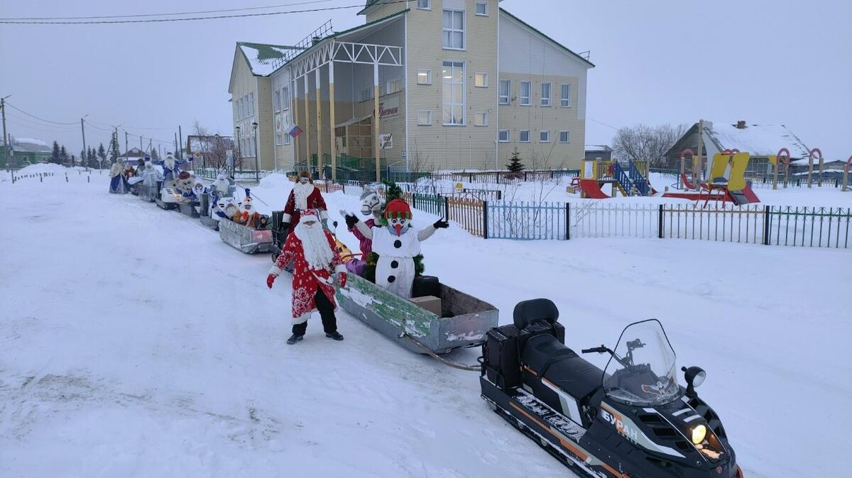 Вместо традиционной санной упряжки в путь отправились снегоходы и бураны, везущие к месту встречи с жителями главных виновников торжества – Дедов Морозов, Снегурочку, Зимушку, Метелицу, Снеговика, Белочку, Лисичку, Лошадку, Белого медведя и пушистую красавицу ель! 🥰 Не забудьте подписаться на канал
