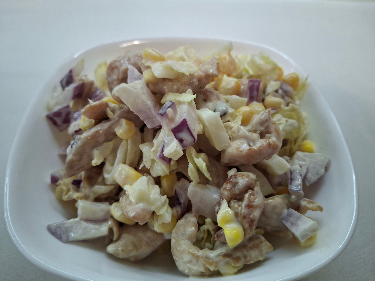 САЛАТ с жаренной КУРИЦЕЙ и пекинской капустой. Жаренная курица хорошо сочетается с разными соусами и заправками и не раскисает.