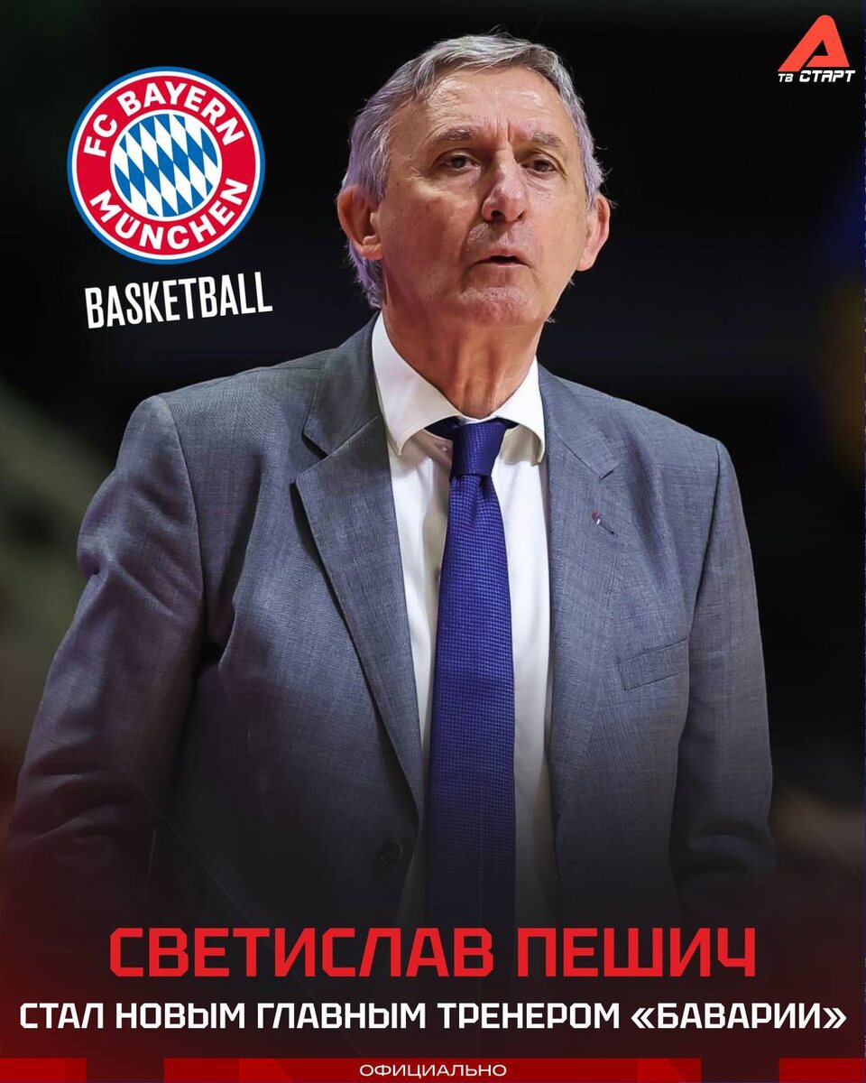 ! Самый титулованный тренер в истории немецкого баскетбола (пять национальных чемпионств) Светислав Пешич снова принял «Баварию». Серб уже работал с клубом с 2012 по 2016 год, приведя его к первому чемпионскому титулу в Бундеслиге в 2014 году 🏆🇩🇪 Подписывайся на ТВ СТАРТ в MAX📲