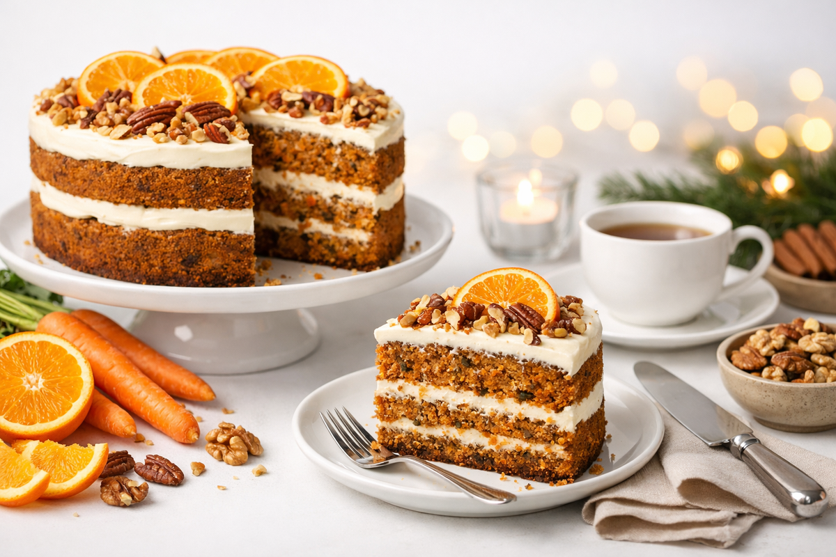 Этот торт всегда удивляет. В составе морковь, а на вкус – сочный, тёплый, с апельсиновой свежестью и ореховой глубиной. Его любят даже те, кто уверяет, что «не ест морковные десерты». Готовится просто, выглядит достойно праздничного стола и отлично хранится.