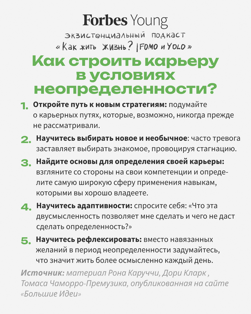 Реально ли в нашем турбулентном мире планировать жизнь? А карьеру? Как найти себя в профессии, если все вокруг постоянно меняется? Как отличить развивающую неопределенность от парализующего хаоса?