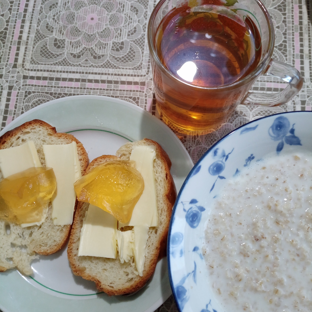 Потом приступила к приготовлению завтрака. Соскучилась по каше, не варила два дня. Поела с удовольствием. Ну и чай с бутербродами с маслом.