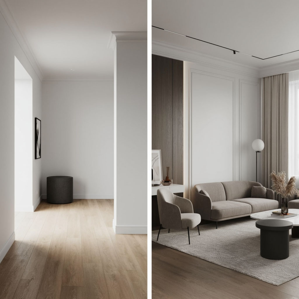 · Бороться с архитектурой: пытаться любой ценой выровнять все стены гипсокартоном. Часто это крадет драгоценные сантиметры и бюджет, не решая проблему.
