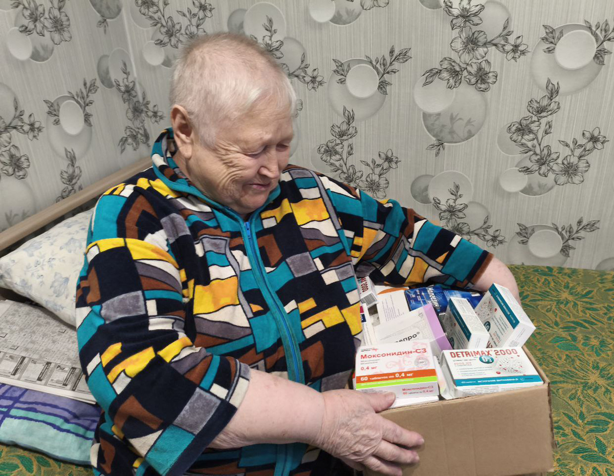 Друзья, мы передали Любови Михайловне запас лекарственных препаратов для лечения хронических заболеваний. В свое время Любовь Михайловна работала на Кольской АЭС, но на «северную» пенсию стажа не хватило. Они с супругом переехали с севера на Новгородчину и устроились на работу в колхоз. Наша подопечная была и пастухом, и скотником. А выйдя на пенсию подрабатывала в магазине. К сожалению, жизнь Любови Михайловны сложилась трагично. Муж рано умер, сын тоже ушел из жизни, старшая дочь болеет, младшая живет в другом конце страны и помочь матери не в состоянии. А помощь очень нужна — у женщины множество возрастных заболеваний, требующих постоянного поддерживающего лечения. Далеко не все необходимые лекарства можно получить по квоте, большую часть приходится покупать самостоятельно. Небольшой пенсии на все необходимое зачастую не хватает. И тогда приходится экономить либо на продуктах, либо на лекарствах. Узнав о работе представительства нашего фонда в Новгороде, пожилая женщина обратилась к