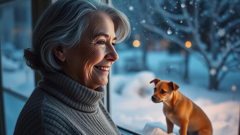Пёс сделал шаг к ним, понюхал край пледа, потом руку Нины Семёновны. Тёплый влажный нос коснулся её пальцев. Она осторожно провела рукой по его шее. Собака не отстранилась, только вздрогнула от очередного далёкого хлопка.