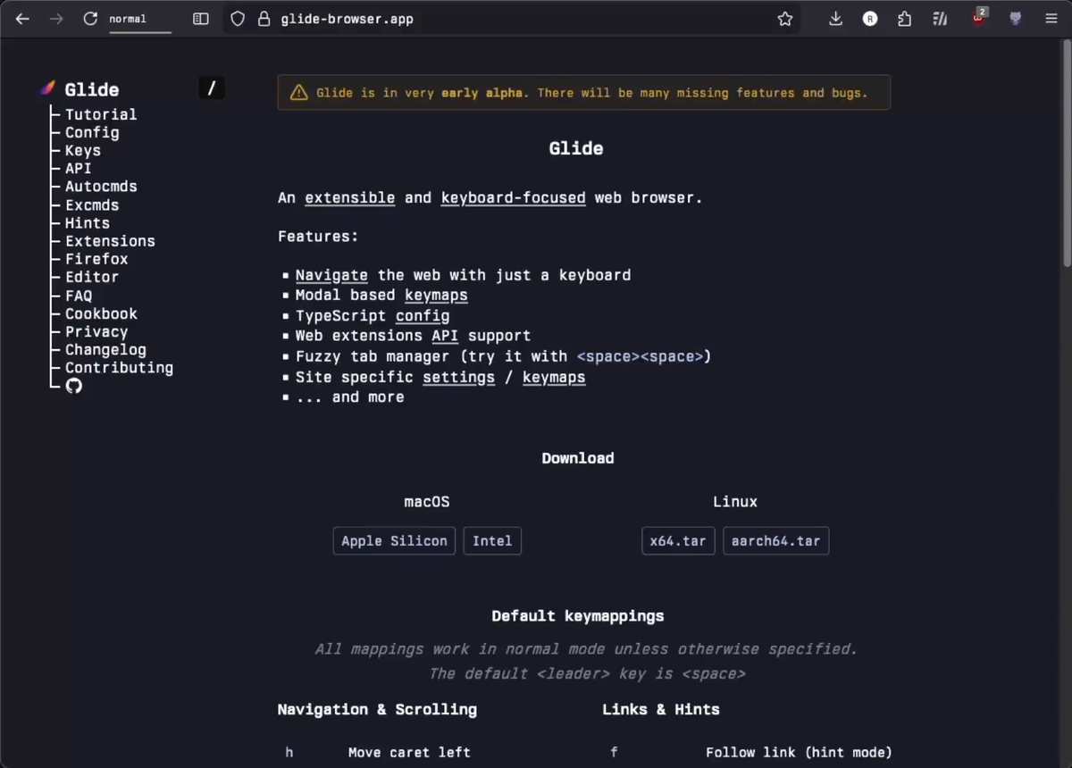 Glide — это расширяемый веб-браузер с акцентом на управление с помощью клавиатуры, предназначенный для повышения эффективности навигации в интернете. Построенный на базе Firefox, он сочетает в себе надежность проверенного движка с инновационным подходом к пользовательскому интерфейсу. * Управление без мыши: Вся навигация в интернете и взаимодействие с интерфейсом оптимизированы для использования исключительно клавиатуры. * Модальные раскладки клавиш: Поддержка различных режимов (Normal/Insert), аналогичных текстовым редакторам вроде Vim, что обеспечивает эффективное переключение между навигацией и вводом текста. * TypeScript-конфигурация: Глубокая настройка браузера осуществляется через конфиг-файл на TypeScript, что дает разработчикам полный контроль над поведением программы. * Поддержка Web Extensions API: Совместимость со стандартными расширениями, что позволяет использовать привычные инструменты в новой среде. * Умный менеджер вкладок (Fuzzy Tab Manager): Быстрый поиск и переключен