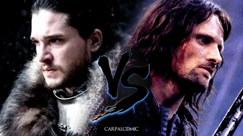 Теперь Арагорн, как наследник Исильдура, также имеет право на южное королевство Гондор. У него есть шанс объединить Север и Юг . У Толкина это более очевидно, чем в «Песни льда и пламени», потому что в «Песни льда и пламени» мы начинаем с объединенных семи королевств под одним королем, и только с традиции и наследия независимости Севера, но Джон, как и Арагорн, имеет право на Север и Юг. Конечно, право Джона на Север искажено, потому что после того, как становится известно его истинное происхождение, он идет после Брана, Сансы и Арьи, но тем не менее, только в его личности сливаются права на Северное и Южное королевства .