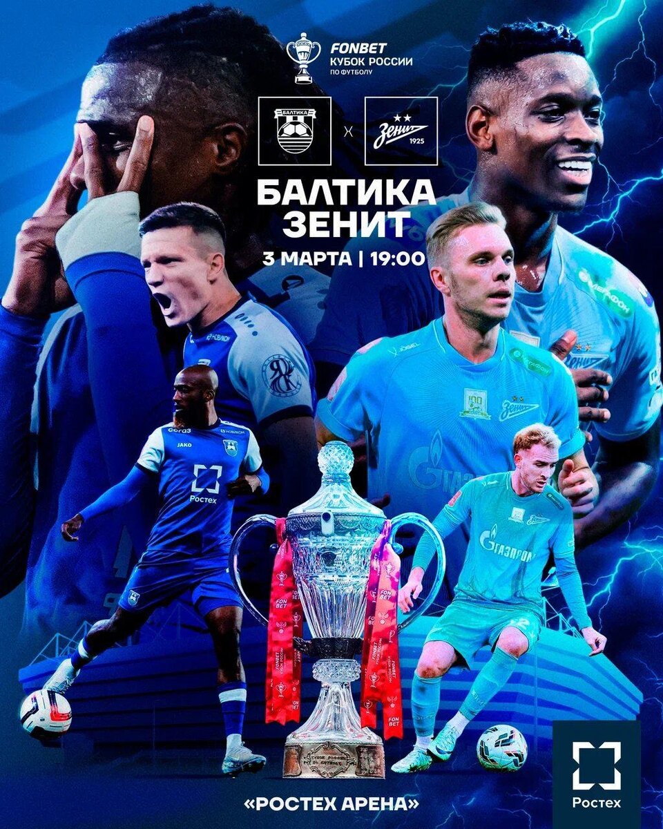 Балтийцы, билеты на матч второго этапа четвертьфинала Пути регионов FONBET Кубка России против «Зенита» уже в продаже! Эта игра станет первой домашней для нашей команды в 2026 году. С питерцами мы сыграем дважды подряд в течение пяти дней. 🏆 «Балтика» 💙 — 💙 «Зенит» 📆 3 марта; ⏰ 19:00; 🎟️ Билеты на матч ⚠️ Обращаем внимание, что посещение кубковой игры по абонементам на весеннюю часть Российской Премьер-лиги невозможно.