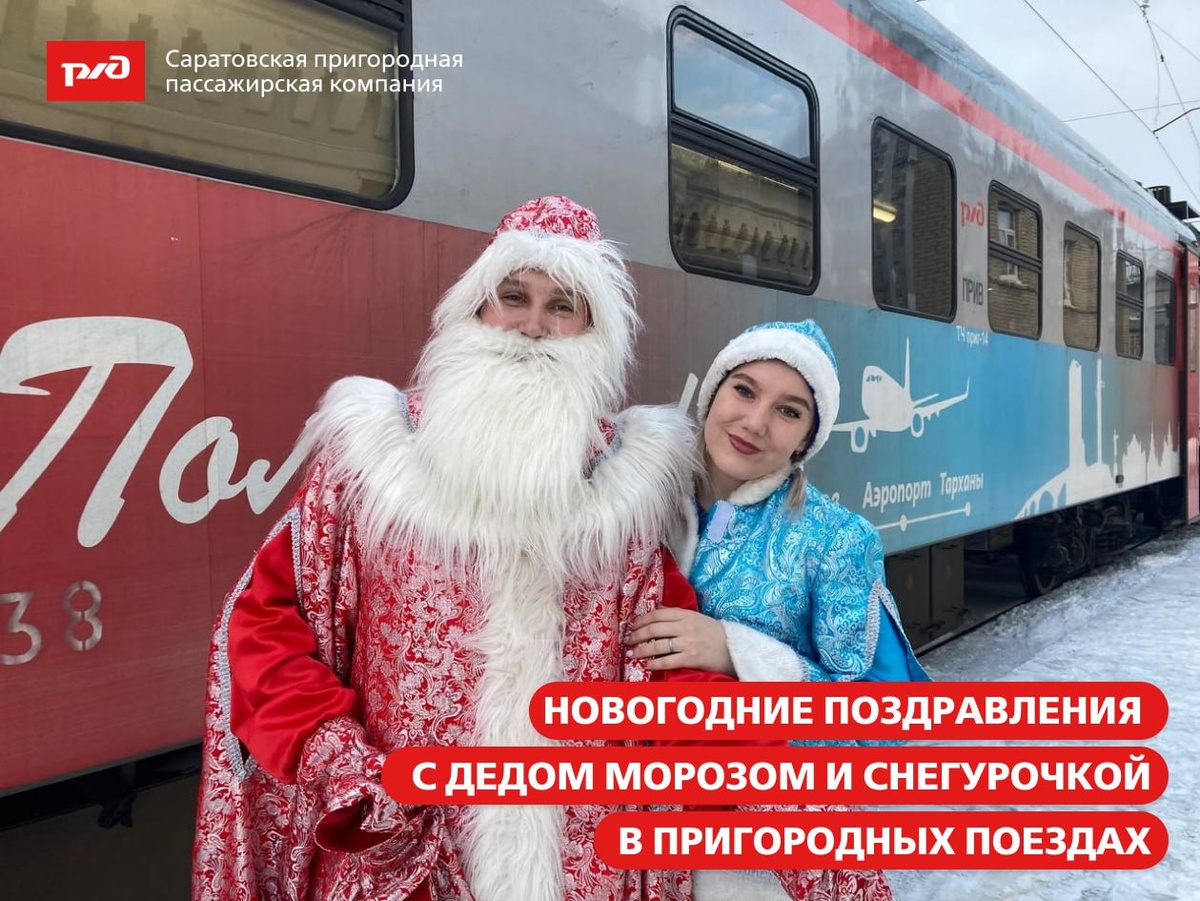 ! 📣 🎄 Коллектив АО «Саратовская ППК» поздравляет Вас с наступающим 2026 годом. Желаем Вам успехов во всех начинаниях и больших открытий в Новом году! 🎇 С 22 по 26 декабря Дед Мороз и Снегурочка будут путешествовать вместе с Пассажирами на пригородных поездах. 🎉 Не упустите шанс, купите билет на пригородный электропоезд сегодня, и, возможно, Вам тоже посчастливится увидеть сказку на яву! Фотоальбом с поздравлениями Пассажиров: https://vk.com/album-146304426_311115199 *** Расписание движения пригородных поездов можно узнать на сайте компании в разделе «Расписание», с помощью мобильных приложений «РЖД Пассажирам», «Яндекс.Электрички», «ПроТранспорт», а также по телефону единого информационного сервисного центра ОАО «РЖД» 8-800-775-00-00 (звонок бесплатный).