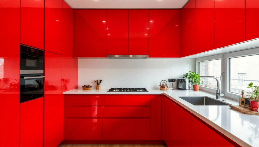 Глянец — очень агрессивная текстура. Он отражает всё: свет, предметы, ваше собственное отражение. Это визуальный шум, который утомляет глаз и не дает пространству «успокоиться». Он требует безупречной чистоты, потому что малейший отпечаток или пылинка сразу заметны.