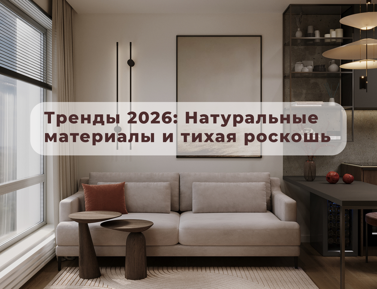 Тренды 2026 года — это дизайн, который работает на человека: качественные материалы, адаптивная планировка, спокойные формы и внимание к экологии. Тихая роскошь превращается в комфорт и тактильность, а не в показную декоративность.
