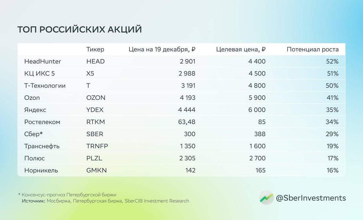 Топ акций от сбера