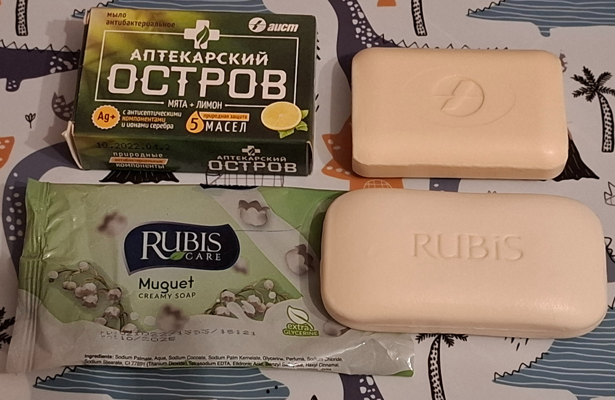 Два ароматных сухих мыльца Аист и Rubis. Мыло БК с ароматом миндаля очень вкусно пахнет,а вот DEX с ароматом персика после сушки на батарее стал почти без аромата.. но посмотрим как будет при резке. Эти два крупных брусочка вместе сохли на батарее,одно прогоркло,другое нет) Хозик АВАКС 300 гр. Крупный брусочек, долго лежит сушится..года два.. не знаю как будет в резке,планирую скоро попробовать. Вид сзади. Эти цветные мылки хорошо подсохли, Весна и верхнее с зелёным чаем сильно прогоркли,многие любят их резку)