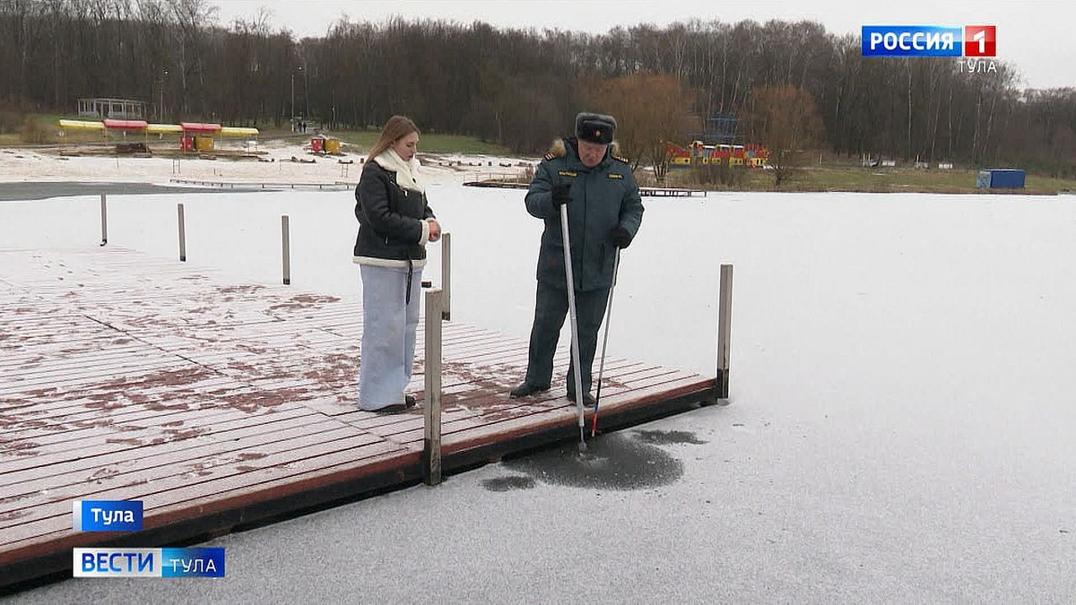 Инспектор ГИМС проверил толщину льда на водоёме в Центральном парке