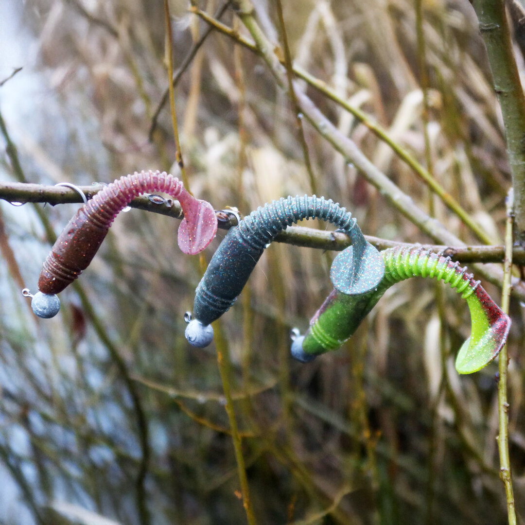 Lucky John Tioga Fat — это утолщённая версия популярного виброхвоста, где объёмная форма с неглубокими рёбрышками по бокам и массивный хвост-пятак обеспечивают размашистую, привлекательную игру в воде. Эта съедобная резина идеально подходит для разных условий ловли, от прозрачных озёр до мутных рек. На течении пробуем все варианты проводок, можно даже чередовать их на одной точке. На водоёмах без течения хорошо работает «ступенька», а в мелких или заросших местах приманку можно применять без передней огрузки. Есть и ещё один результативный способ использования виброхвоста: в паре с чаттербейтом. Силиконка просто надевается на одинарный крючок другой приманки, и в таком симбиозе происходит ловля. Tioga Fat подходит под разные варианты оснастки. На теле имеются небольшие канавки под офсетный крючок: сверху, чтобы прятать жало, и снизу – для лучшей засекаемости. В незацепляющемся варианте зажимаем больше обычного фрикцион и делаем размашистую подсечку. Двойник подбираем таким образом, что