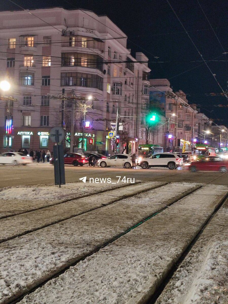 Центр весь и так краснее некуда, а тут еще и три машины на Алом поле столкнулись, пишет читатель @74.ru.