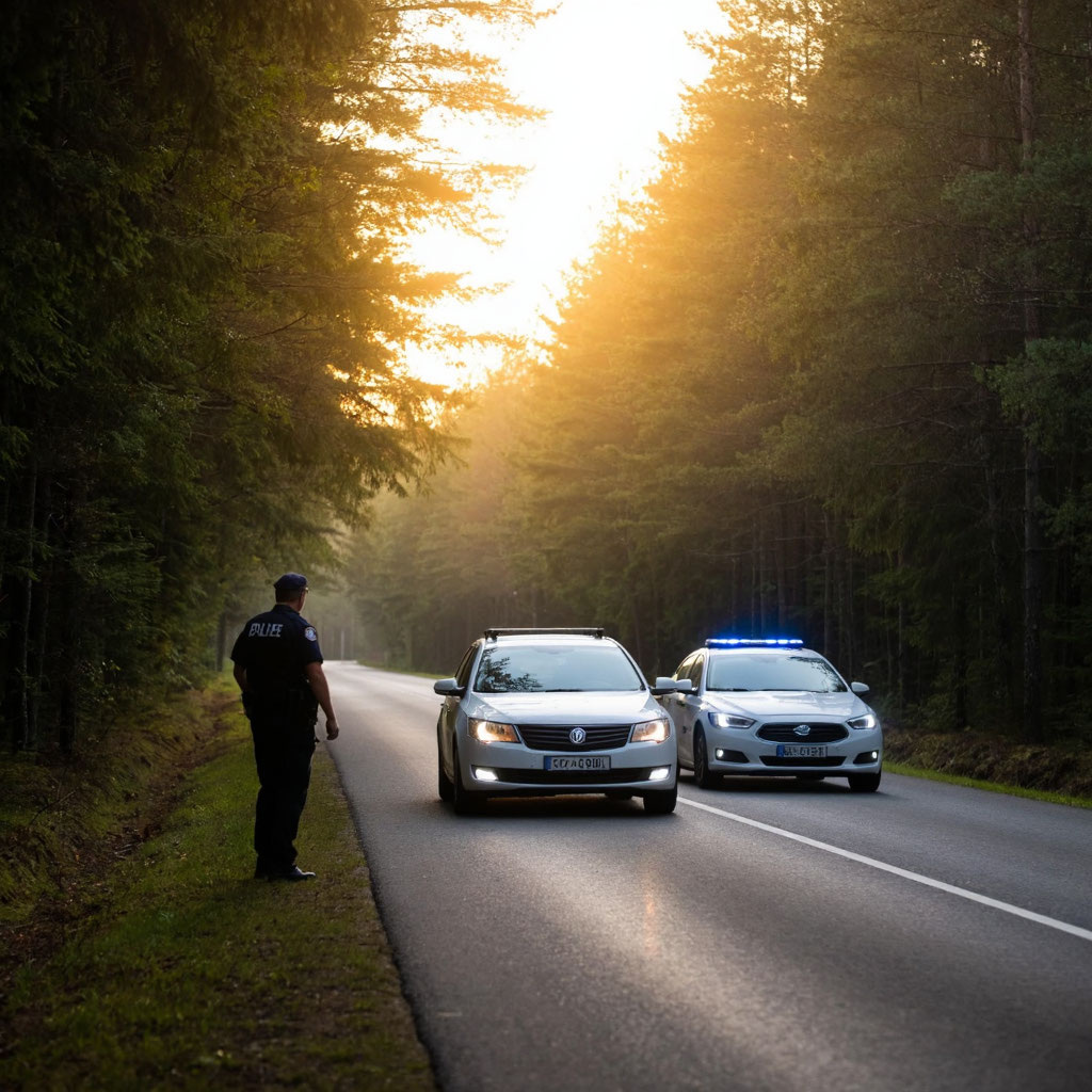 И вот — сюрприз! На обочине стоит полицейская машина. Несколько сотрудников что‑то обсуждают, ходят туда‑сюда, серьёзные такие. Виталик притормозил, чтобы создать видимость дисциплинированного водителя, и уже хотел было проехать мимо…