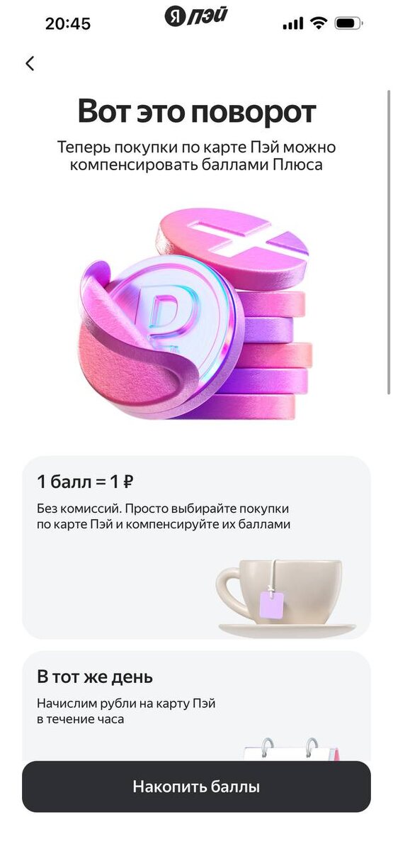 🩷 После расставания с желтым банком, долго искала новые варианты, выгодных, удобных банков. Пока могу петь оды, только Яндекс банку)) Тем более, что вчера нарыла новую функцию - можно теперь компенсировать баллы - в реальные деньги 💰 Сейчас можно получить в 🎁 кешбэк 5% за все покупки на месяц. Карта цифровая, открывается за минуту — скидки от партнёров, переводы и пополнения бесплатные, короче пользуйтесь пока добрая: https://bank.yandex.ru/invite?refid=2Da2yhVBQrw