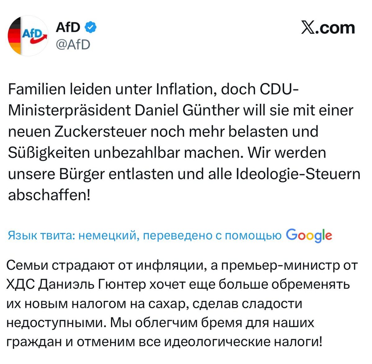 🇩🇪 Немецкая партия «Альтернатива для Германии» отвечает подсвинкам, покусившимся на сладкое.