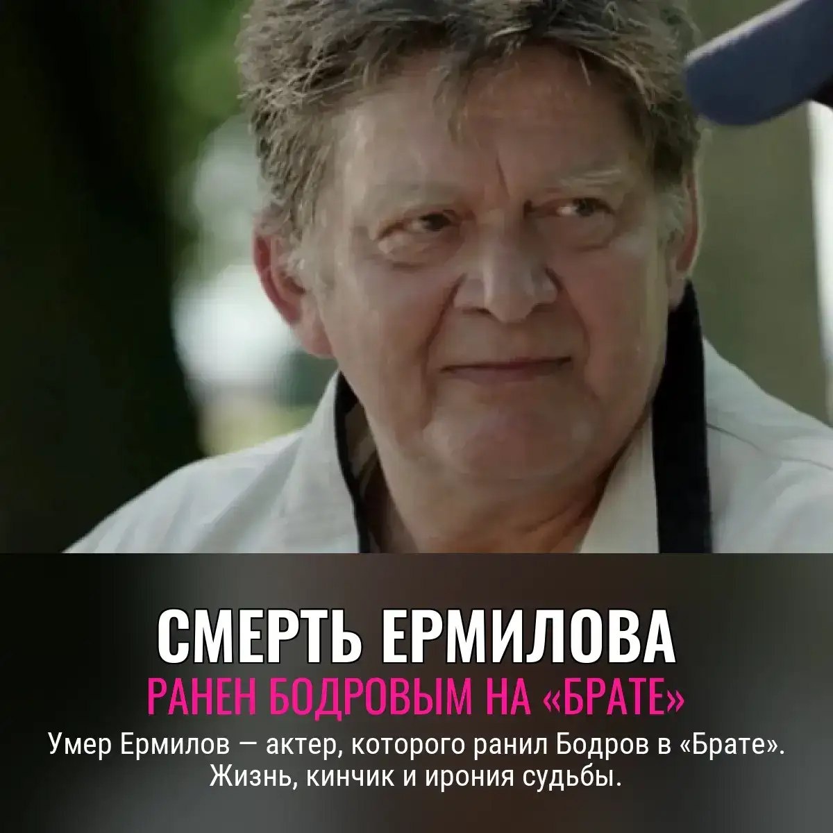 Тот самый, кому Бодров в «Брате» всадил не только реплику, но и стальной предмет по неосторожности. ⚡Ермилов таскал свои харизматичные "рыло" по всем криминальным сериалам России, от разборок в «Бандитском Петербурге» до прогулок по «Улицам разбитых фонарей». 🎬 Прощай, актер-знак эпохи: теперь эпизоды с настоящей жизнью уходят за кулисы., Следите за новостями 📩