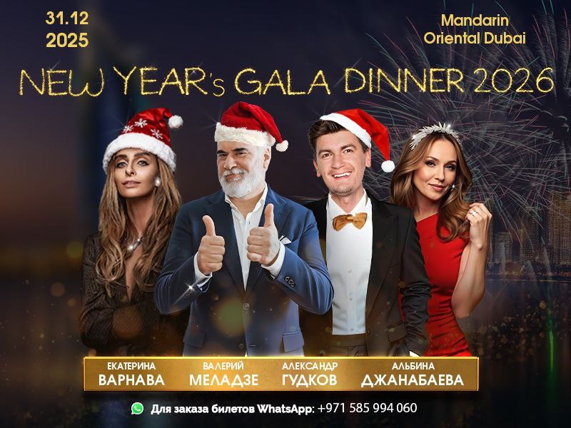 Отпразнуйте Новый год в одном из лучших отелей — Mandarin Oriental Jumeira Dubai. Это красивое, весёлое, вкусное и незабываемое событие останется в памяти надолго. В программе вечера: • Валерий Меладзе • Альбина Джанабаева • Екатерина Варнава • Александр Гудков Вас ждёт изысканное меню от шеф-повара по системе à la carte, праздничная программа, живая музыка, конкурсы, традиционные Дед Мороз и Снегурочка, сюрпризы и подарки — всё, чтобы эта ночь стала по-настоящему особенной. Когда: 31 декабря 2025 Где: Mandarin Oriental Jumeira Dubai Билеты 👉🏻 по ссылке. А дополнительные вопросы можно задать по телефону +971 585 994 060. Количество мест ограничено — не упустите возможность забронировать билет на самый яркий Новогодний ивент города. #Реклама #НаПравахРекламы