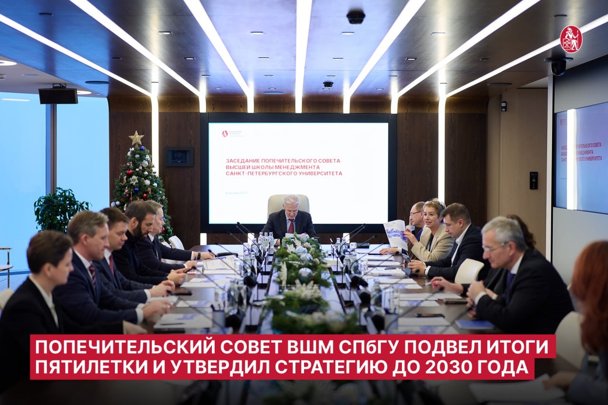 университета. Его провел помощник Президента Российской Федерации, член Попечительского совета ВШМ СПбГУ Андрей Фурсенко. ✔ Участники подвели итоги реализации стратегии развития Бизнес-школы за прошедшие пять лет и утвердили новую дорожную карту до 2030 года. 💬 Открывая заседание, Андрей Фурсенко высоко оценил достижения: «ВШМ СПбГУ не только сохранила статус ведущей бизнес-школы страны и единственной в России с «тройной короной» международных аккредитаций, но и получила эксклюзивный статус 5 Palmes Emeritus за глобальное влияние. Эти результаты — прочная основа для нового стратегического цикла». ✔ Итоги пятилетки: ➡ Международный авторитет Бизнес-школы подтвердил новый статус «5 Palmes Emeritus». ➡ Научный потенциал отразили флагманские конференции ВШМ СПбГУ: «Теория игр и менеджмент», «Экономика и менеджмент», а также 272 научные публикации, 75 из которых вышли в журналах высшего квартиля Q1 Scopus. ➡ Количество абитуриентов в 2025 году удвоилось, средний балл ЕГЭ — 239,6 (самый
