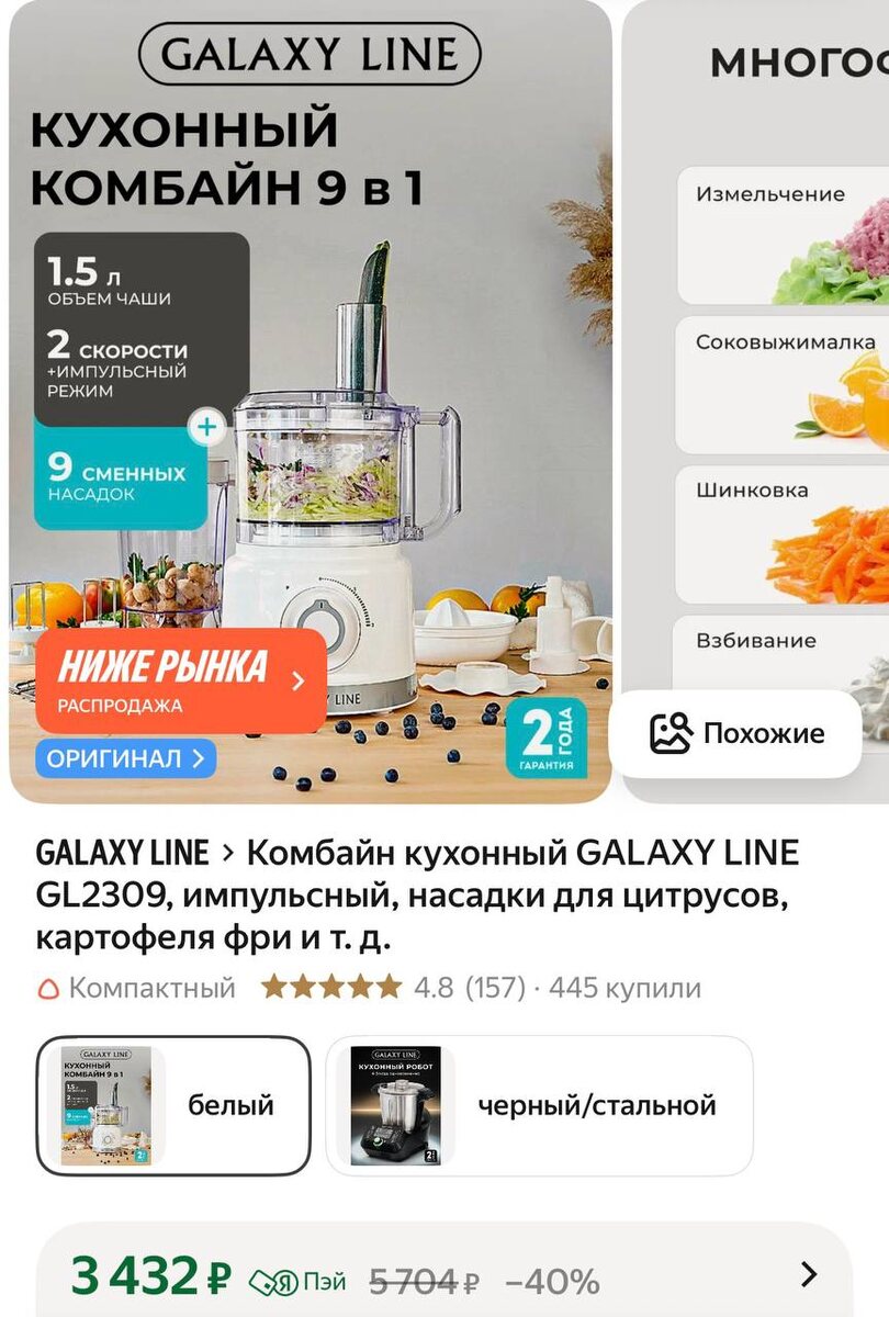 Комбайн кухонный GALAXY LINE GL2309, импульсный, насадки для цитрусов, картофеля фри и т. д.