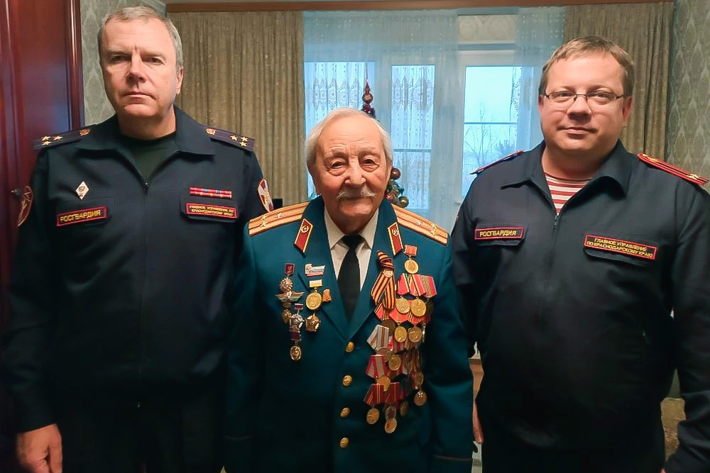Заместитель начальника Главного управления Росгвардии по Краснодарскому краю полковник полиции Кирилл Критченков и заместитель начальника отдела подполковник полиции Анатолий Чиков навестили и поздравили с 98-летием ветерана Великой Отечественной войны и войск правопорядка полковника в отставке Николая Михайловича Яшкина.
